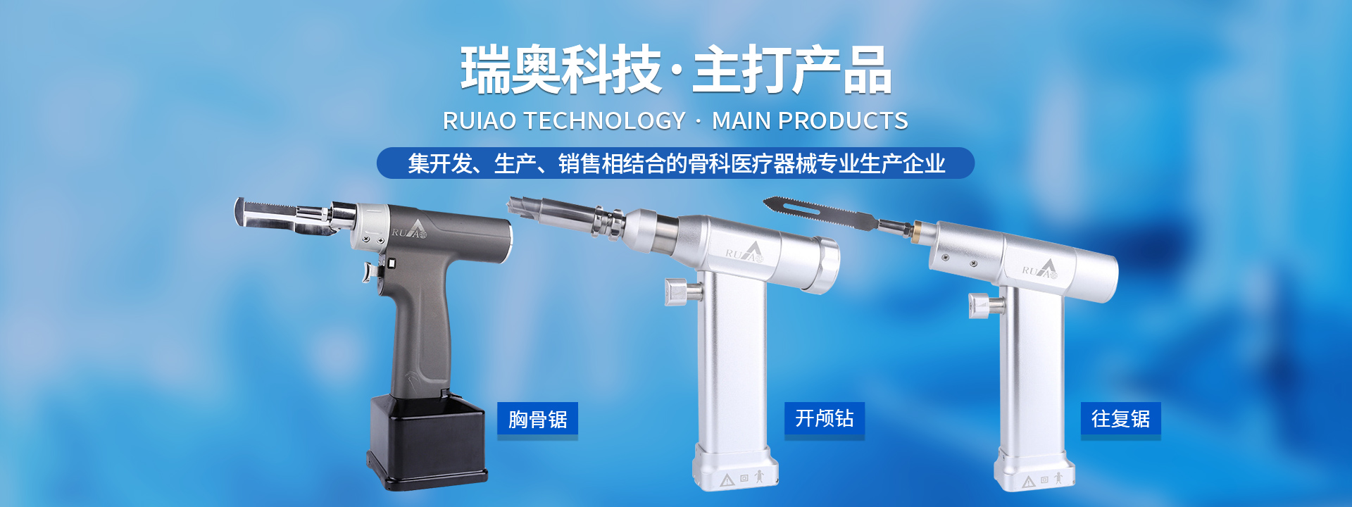 鹽城瑞奧科技有限公司主要產(chǎn)品:醫(yī)用電動(dòng)鋸鉆系列(可高溫高壓消毒和熏蒸消毒兩種):包含骨鉆、擺鋸、胸骨鋸、空心骨鉆、開顱鉆、顱骨銑等等,適用于骨科、腦外科、神經(jīng)外科、胸外科、手足及顯微外科、脊柱外科、整形外科等各種手術(shù)的要求。電動(dòng)石膏鋸可切割高分子繃帶、石膏等。基礎(chǔ)器械系列:咬骨鉗,髓核鉗,椎板咬骨鉗,持骨鉗,四肢骨折手術(shù)器械包等。